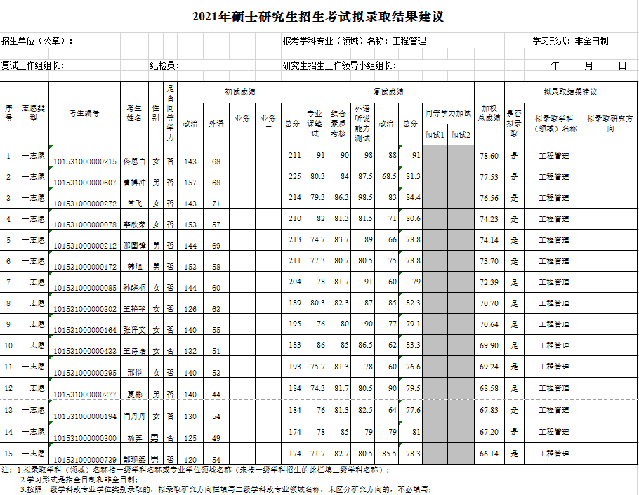 【工程管理】拟录取名单-2021