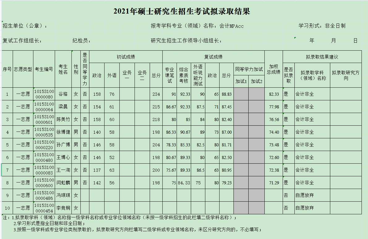 【会计(非全日制)】拟录取名单