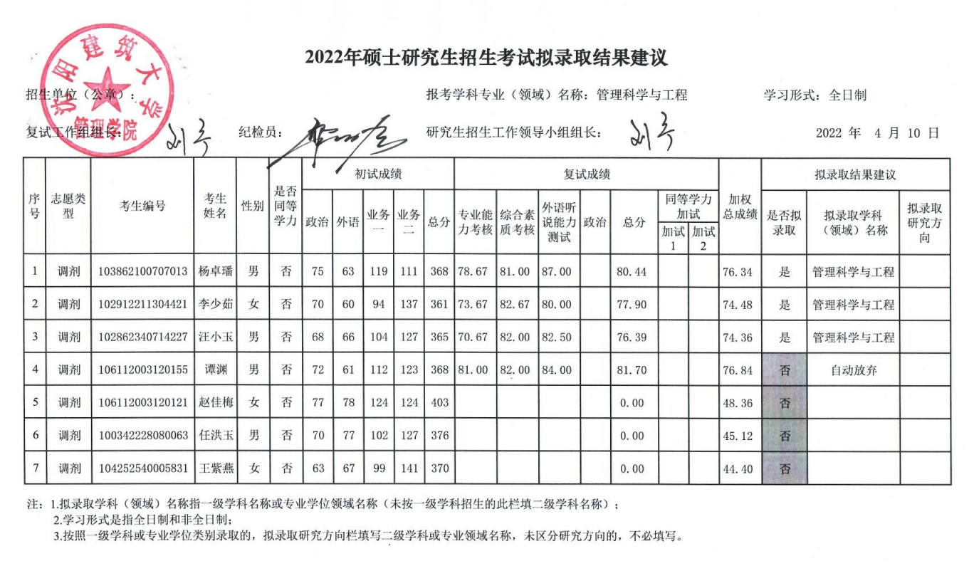 2022年硕士研究生招生考试拟录取结果公示-管科第二批调剂