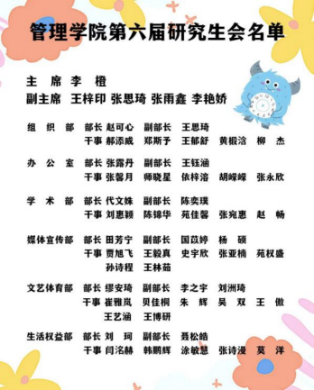 纳新面试圆满完成,现公布365英国上市集团第六届研究生会全体成员名单: